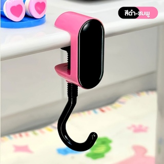ตะขอแขวนกระเป๋า ตะขออเนกประสงค์ ดีไซน์มินิมอล ติดขอบโต๊ะ ไม่ต้องเจาะ (สีดำ-ชมพู)