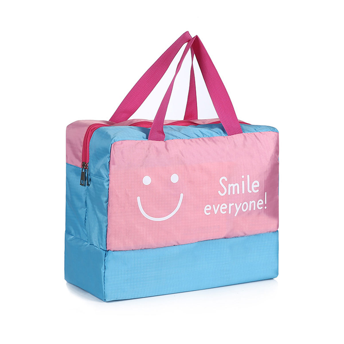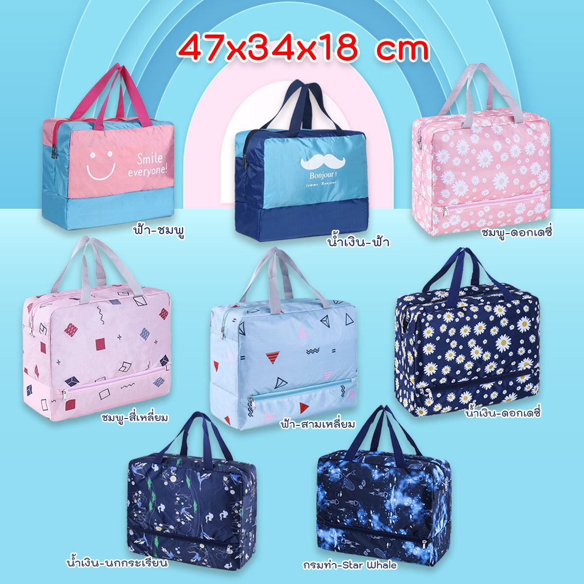 กระเป๋าเดินทางพับได้ 3 ช่อง กันน้ำ มีช่องใส่รองเท้า ขนาด 47x34x18 cm. (สีฟ้า-ชมพู)
