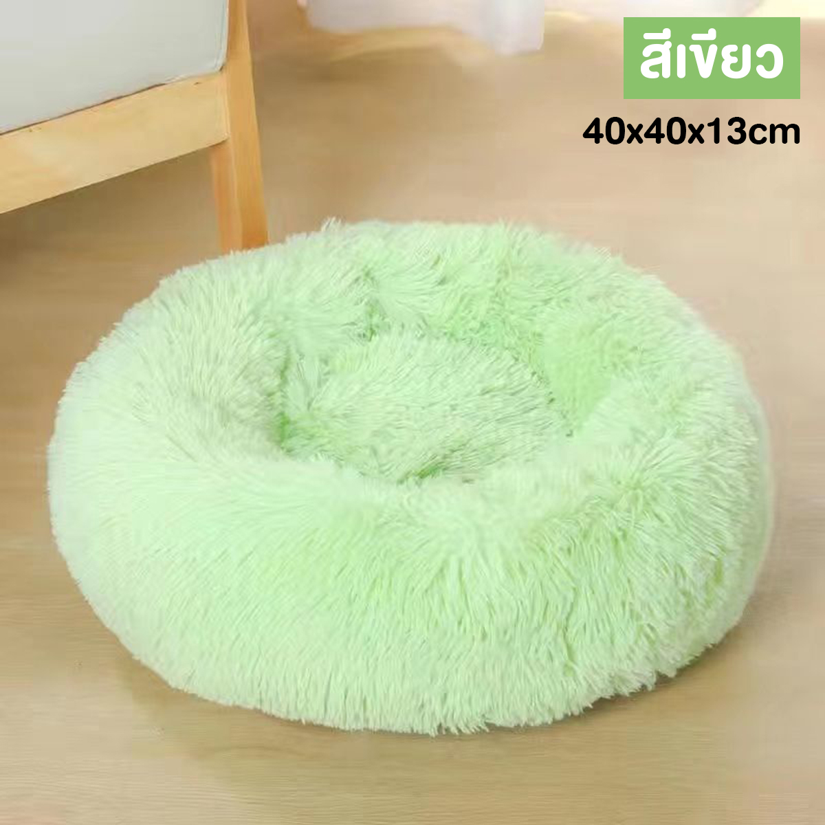 ที่นอนแมว เบาะนอนแมวทรงกลม ขนาด 40 cm. ขนนุ่ม ซักได้ (สีเขียว)