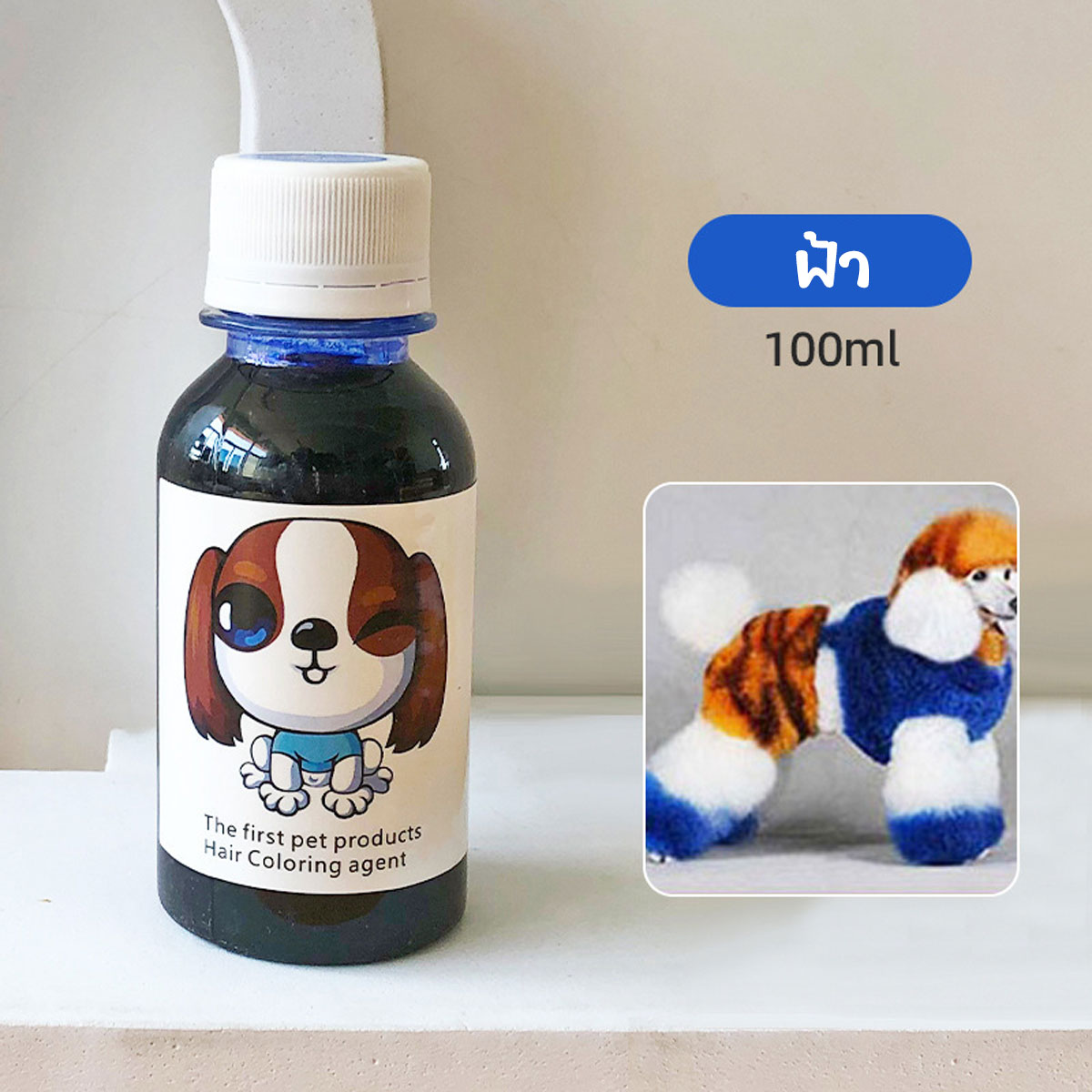 สีย้อมขนสัตว์เลี้ยง สุนัข แมว ขนาด 100 ml. ไม่ระคายเคือง ติดทนนาน (สีฟ้า-Blue)