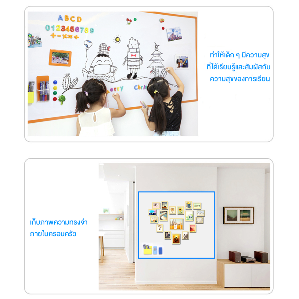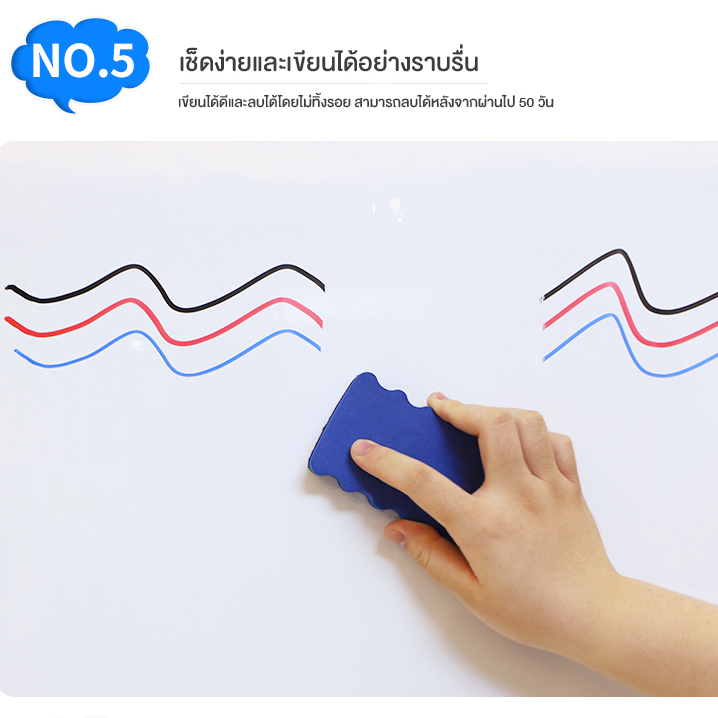 - ตัวกระดานสามารถเขียนเปลี่ยนแปลงข้อความได้ ไม่จำกัดจำนวน ลบง่าย ทนต่อการขีดข่วน