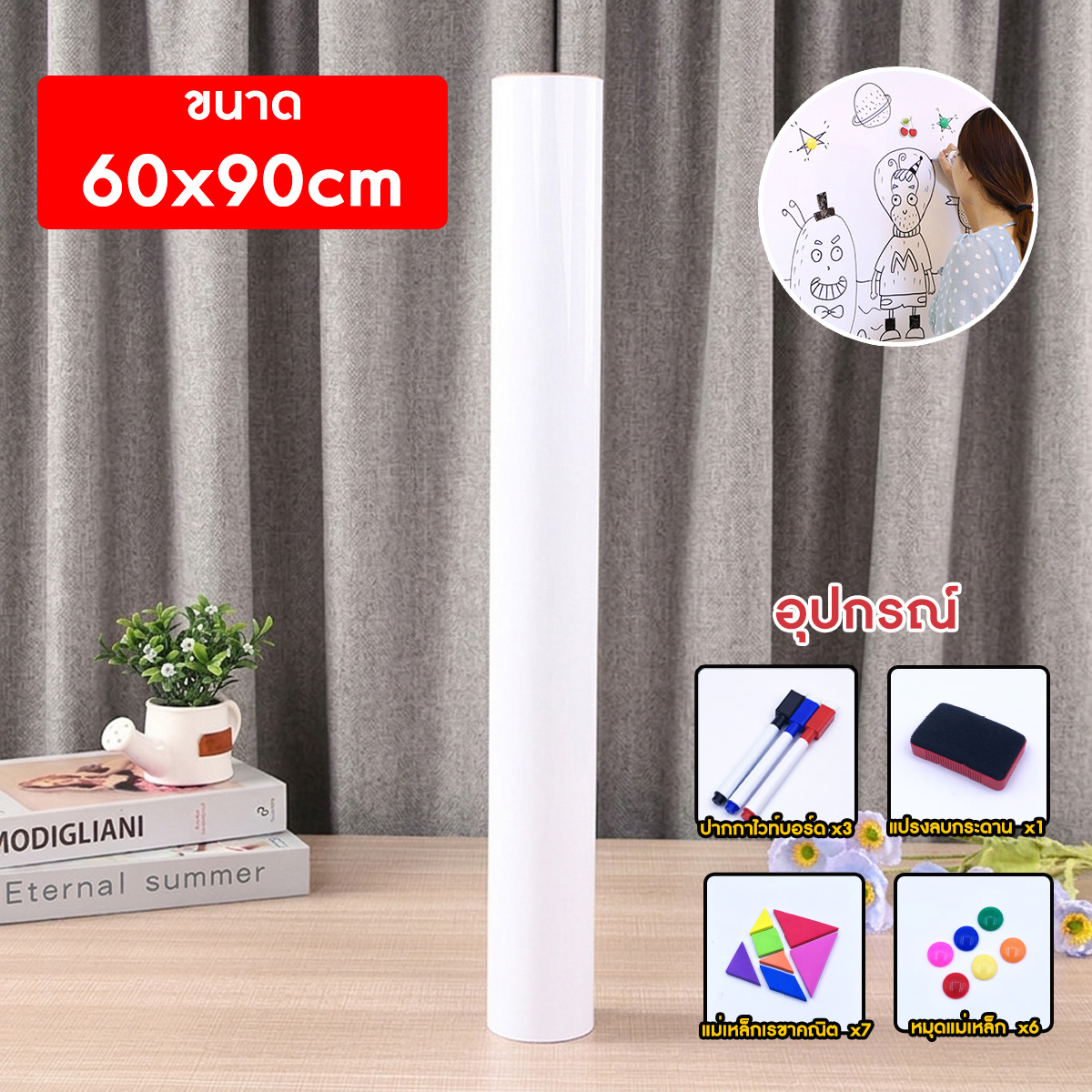 - กระดานไวท์บอร์ด 60x90 cm 1 ชิ้น