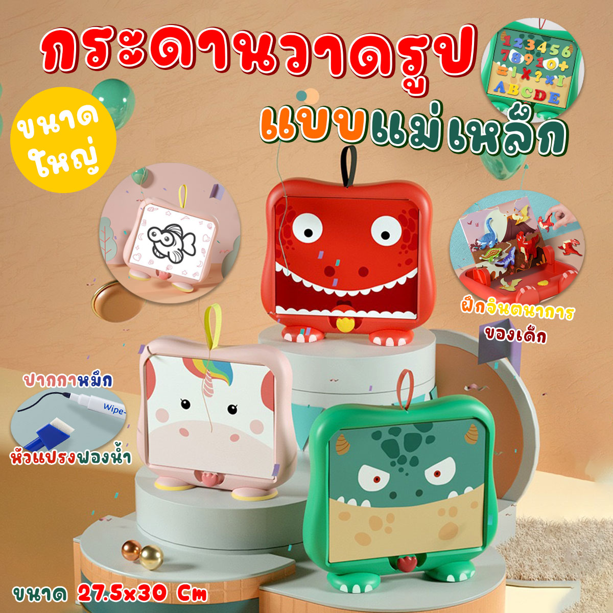 กระดานวาดรูป กระดานวาดเขียนแม่เหล็ก ขนาด 27.5x30 Cm (ลายไดโนเสาร์แดง)